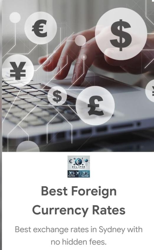 Eclipse currency exchange best exchange rate in Sydney provide over then 30 country currency no fees or commissions on sale open 7 days until late currency exchange rates live updating to the minute call us to book your currency special offer for large money exchange. we here to help you to get your currency with good rate in best time provide you all knowledge and experience without hesel eclipse is best